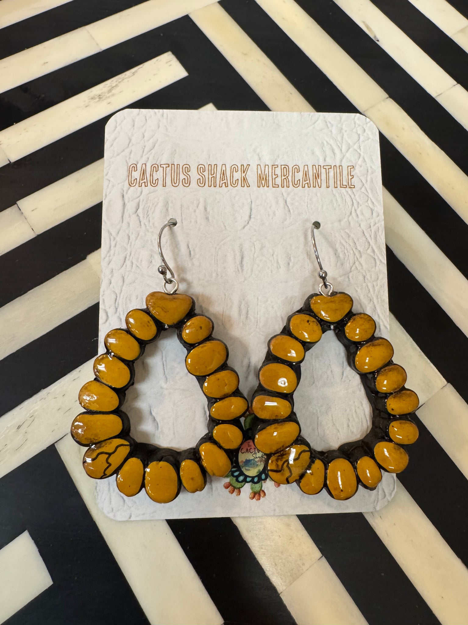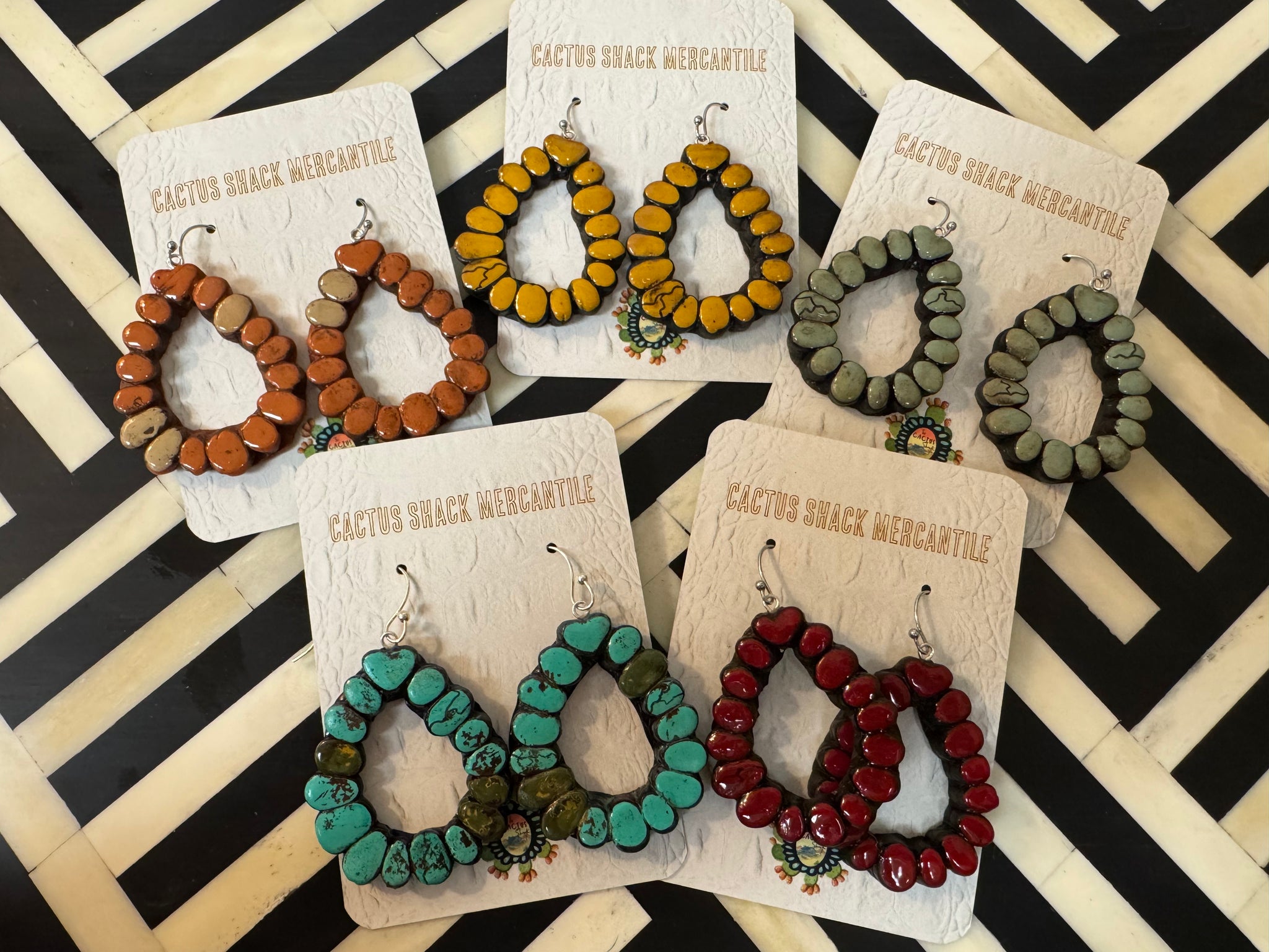 A small stacked teardrop earring. Hand painted. Each one is unique and lightweight.